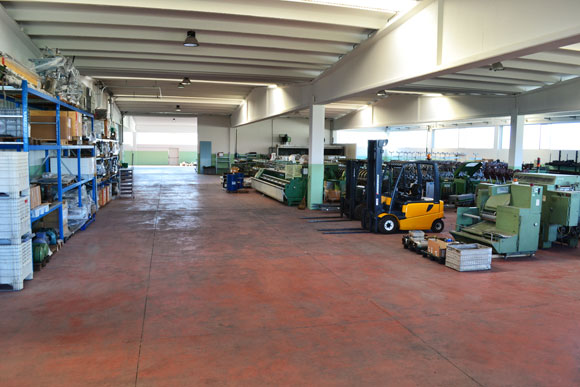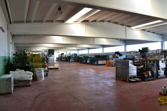 Le grandi superfici del nostro magazzino consentono un perfetto stoccaggio del macchinario usato.